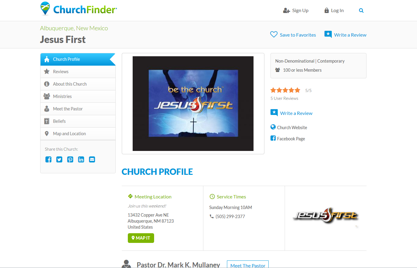 Churches with ChurchFinder Pro show up at the TOP of our city searches with a prominent “Featured Church” listing that includes your church logo and 5-star rating. And since ChurchFinder.com has the most people looking for a church in most U.S. cities, every month you will connect with people looking for a church in your city.